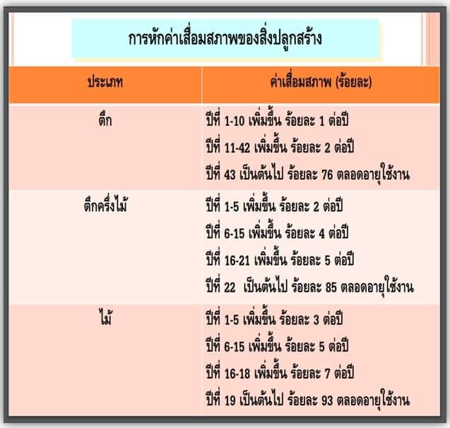 ราคาประเมินทุนทรัพย์โรงเรือน สิ่งปลูกสร้าง ราคาประเมินทุนทรัพย์ห้องชุด และอัตราค่าเสื่อมราคา