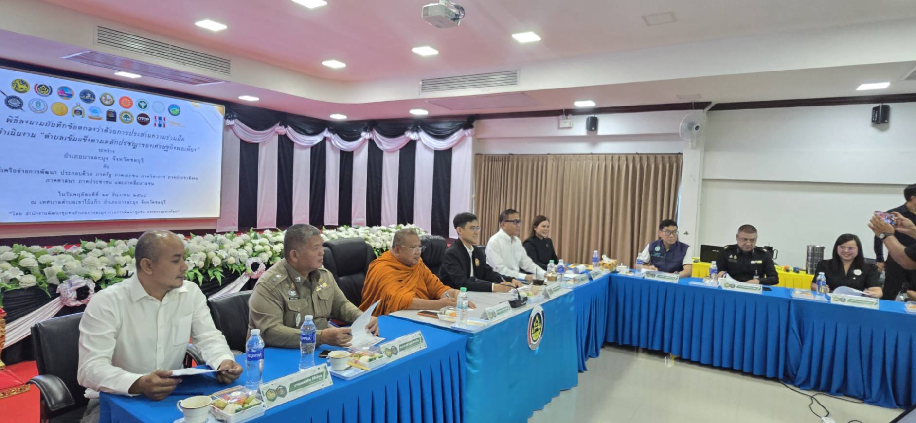 วันที่ 18 ธันวาคม 2568 เวลา 09.30 น. ณ ห้องประชุมเทศบาลตำบลเขาไม้แก้ว อำเภอบางละมุง จังหวัดชลบุรี นายสุมน สุกใส รองปลัดเทศบาล รักษาราชการแทนปลัดเทศบาล ปฏิบัติหน้าที่นายกเทศมนตรีตำบลเขาไม้แก้ว เข้าร่วมพิธีลงนามบันทึกข้อตกลงความร่วมมือ (MOU) และพิธีประกาศวาระ “ตำบลเข้มแข็งตามหลักปรัชญาของเศรษฐกิจพอเพียง” โดยมี นายอนุศักดิ์ พิริยอมร นายอำเภอบางละมุง เป็นประธานในพิธี